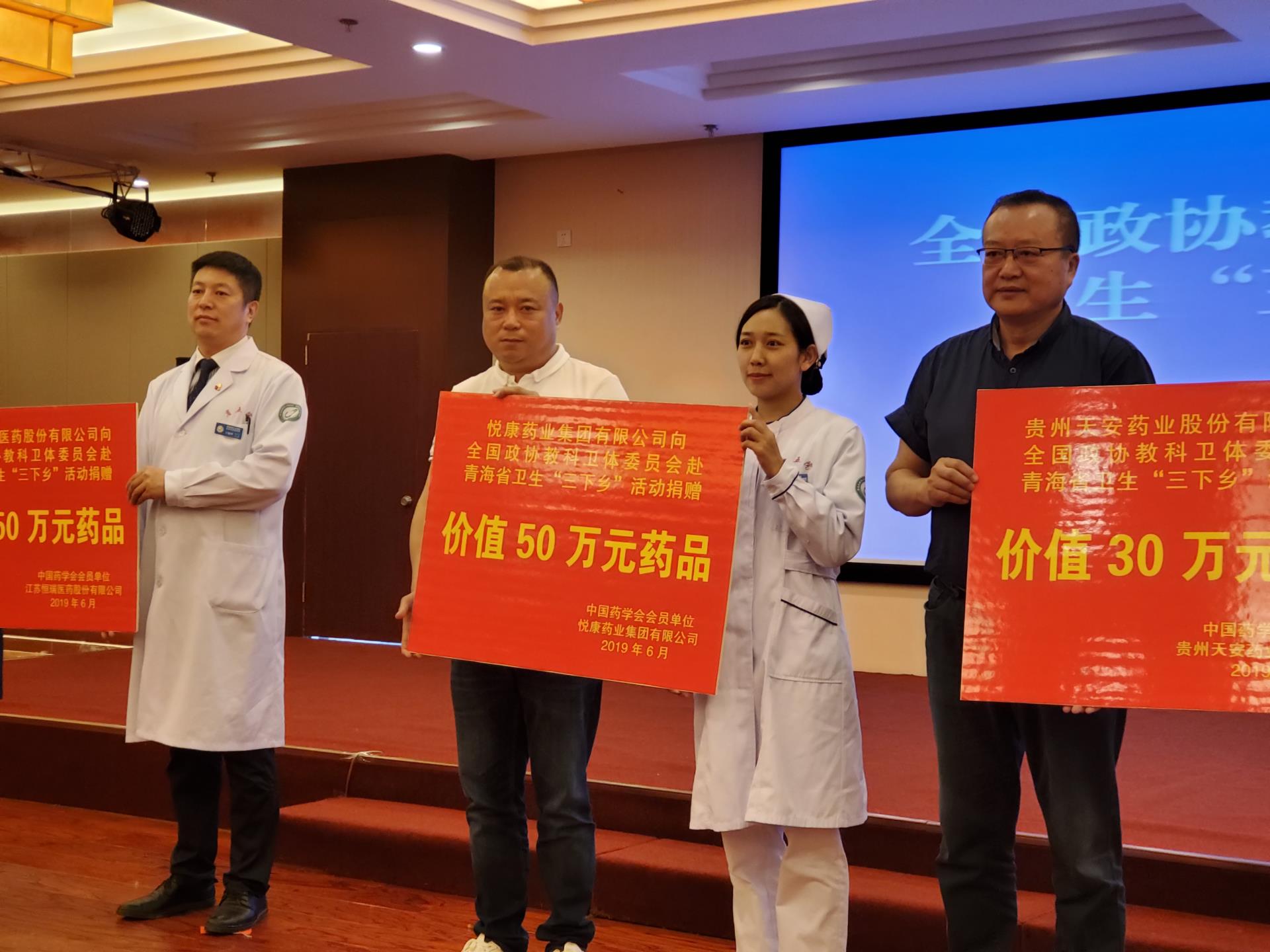 2019年6月,向全国政协教科卫体委员会卫生“三下乡”活动捐赠价值50万元药品