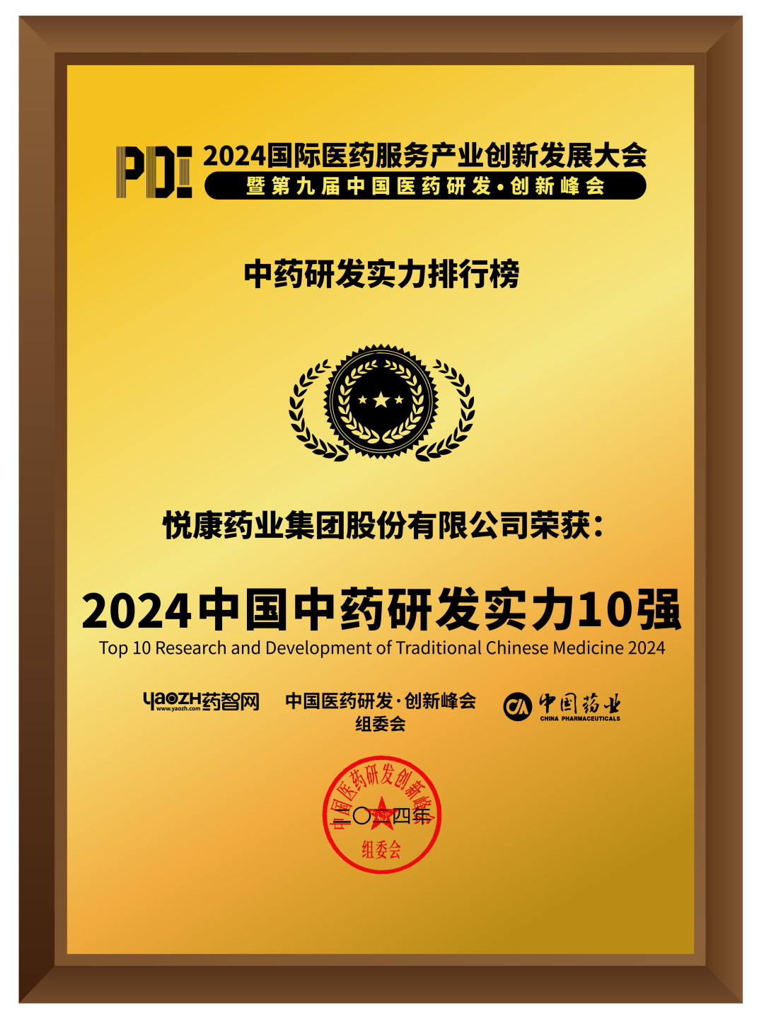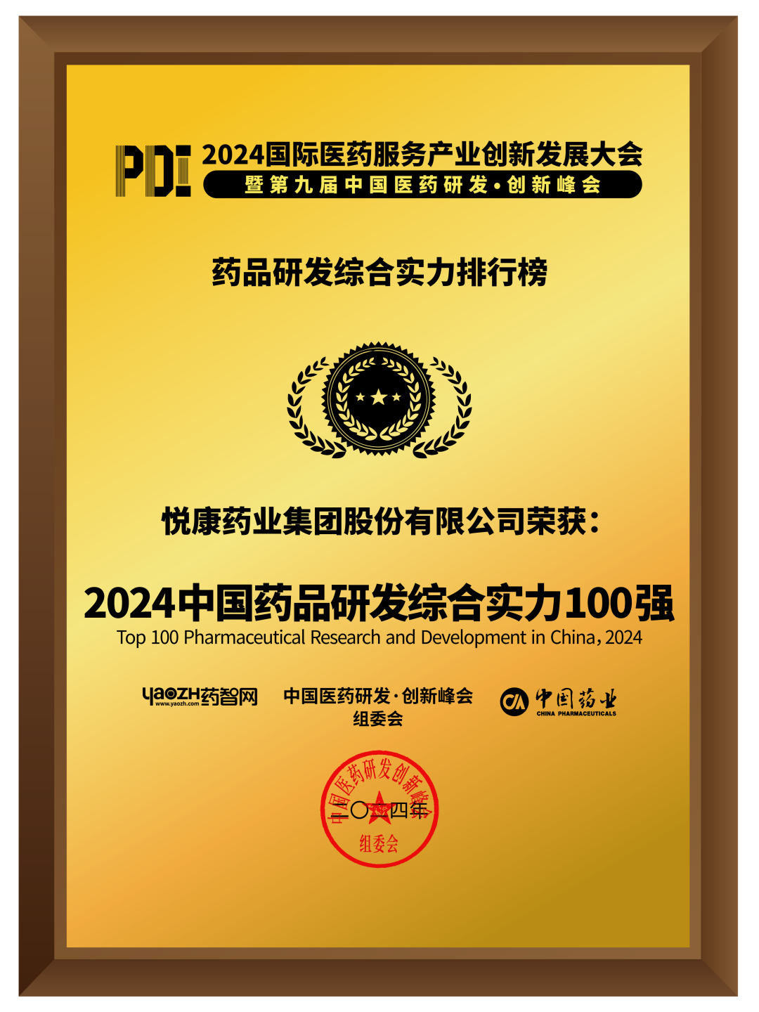近日,由中国国际科技促进会、药智网等主办的2024国际医药服务产业创新发展大会暨第九届中国医药研发·创新峰会(PDI)召开,会上,《2024中国药品研发实力排行榜》系列榜单隆重发布。凭借在研发创新方面的卓越表现,澳门永利博彩官方网站集团成功入榜《2024中国药品研发综合实力排行榜 TOP100》,并荣登《2024中国中药研发实力排行榜》第六名。