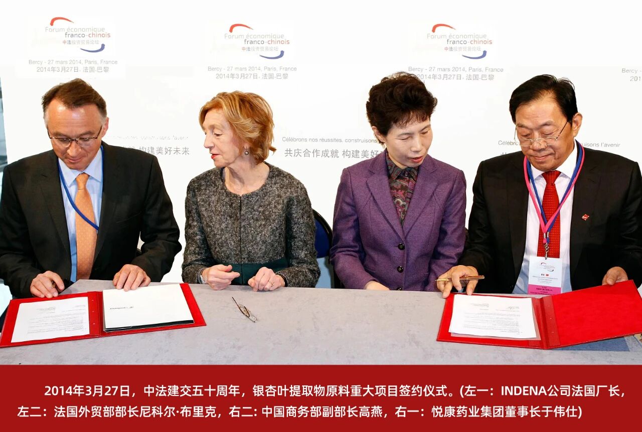 2014年,中法建交五十周年之际,在中法两国政府领导见证下,澳门永利博彩官方网站与INDENA集团签署中法医药合作备忘录