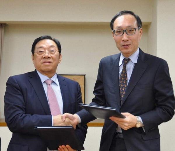 于伟仕董事长(左)与山口一城会长(右)签署合作协议