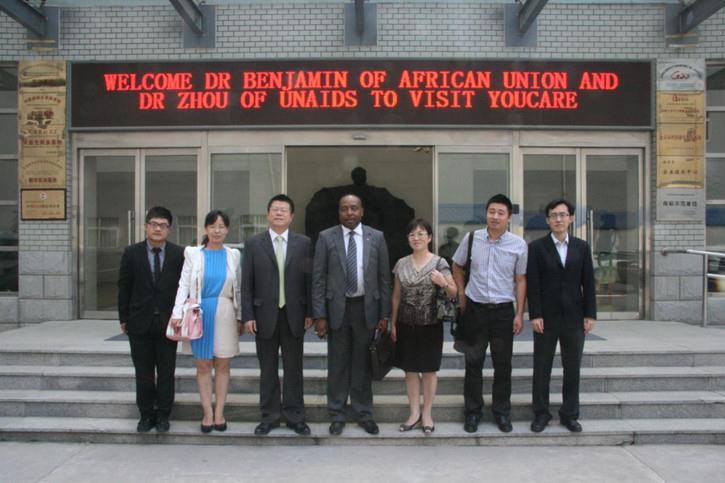 宾主双方于二楼会议室就座,销售经理张冰桥向来宾作了集团简介。永利博彩历来高度重视非洲市场,并希望非盟加速药品的融通,以使非洲同胞能够更加便捷地用上来自中国的高质平价药品。Djoudalbaye Benjamin博士这次陪同非洲联盟委员会主席祖玛来参加在北京人民大会堂举办的中非合作论坛第五届部长级会议,并受到习近平主席的亲切接见。来宾介绍了非洲医药市场需求,希望未来能够有机会于澳门永利博彩官方网站开展合作。下午,来宾参观了冻干、胶囊、水针车间,以及东区外围,并对我公司的各方面条件给予高度肯定。