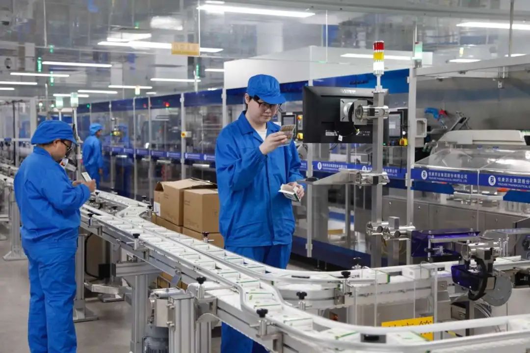 图为中国医药工业百强企业澳门永利博彩官方网站集团药业生产车间内,工人在生产线上工作。