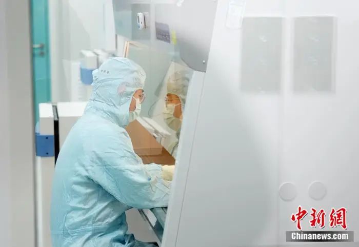 2月14日,北京,研发人员在进行细胞药物制备。中新社发 毛建军 摄