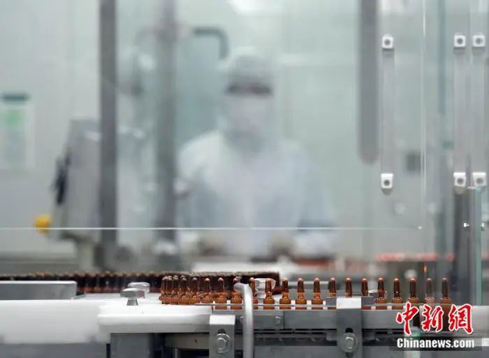 2月14日,北京,智能化车间内无菌水针在进行灌装。中新社发 毛建军 摄