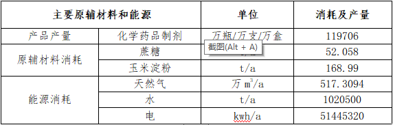一、产品产量及主要原辅材料消耗和污染物的产排情况